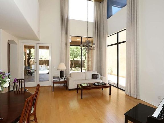 Beautiful open light two story four bedroom house in Los Abrigados gated community. Open floorplan with high ceilings and large windows. Light wood and tile flooring. Kitchen with granite countertops, double ovens, modern cabinetry and a large breakfast bar. Kitchen opens to family room with a gas fireplace. One bedroom is downstairs and 3 others including master are upstairs. Community has heated pool and spa and is located near shopping, schools, restaurants and is minutes away from downtown Scottsdale.