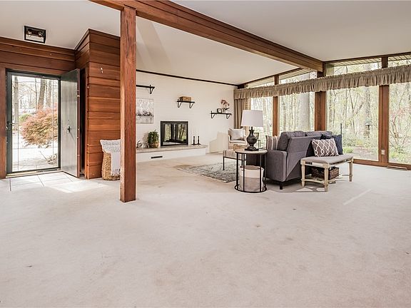 This contemporary 4 bedroom 2 bath Ranch style home in the Jackson Local school district sits on a wooded 1.3 acre lot at a dead end street. This home gives you flexible opportunities to create space as you need. The 2,436 square feet of one level living offers details like vaulted ceilings, cedar paneled walls, and floor to ceiling windows! In the kitchen you will have plenty of cupboards and pantry options! You will love to take in all the wildlife from your 3 season Porch surrounded by windows and sliders to the outdoors. Need an office or a library or maybe a room for yoga and a treadmill? The space is here! The primary bedroom is amazing with a wall of built-in closets and an ensuite bathroom. You’ll find 3 more bedrooms and full bathroom, along with laundry room and utility closet. There is a 2 car attached oversize garage along with the detached garage (can accommodate a 3rd car) or use it for lawn equipment and recreational toys, and the cutest little garden shed for all your p