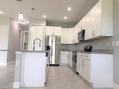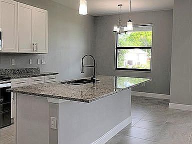2019 New Construction 3 Bed 2 Bathroom 2 Car Garage CBS Home on City Water. Hurricane/Impact Windows and hurricane manual panels for Slider. Tiled throughout. Great Open Floor Plan. Kitchen with Granite, Island with sink, stainless Appliances and Beautiful Cabinetry. Laundry room inside Home. Master has nice walk-in closet. Senticon System around perimeter of property. Pocket slider to Covered Lanai which is plumbed for Outdoor kitchen.