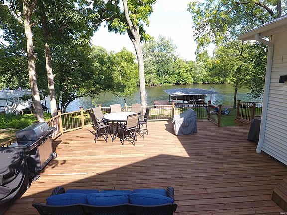 This two bedroom/two bath Lake Shafer home was fully remodeled in 2023. Approx 100 ft of lake front with all new steel seawall , two permanent boat lifts, and a deck at the water. Plenty of sliding glass doors allow an abundance of natural light. Great outdoor space features a large wrap around deck and firepit. Detached two car garage adds additional storage space.