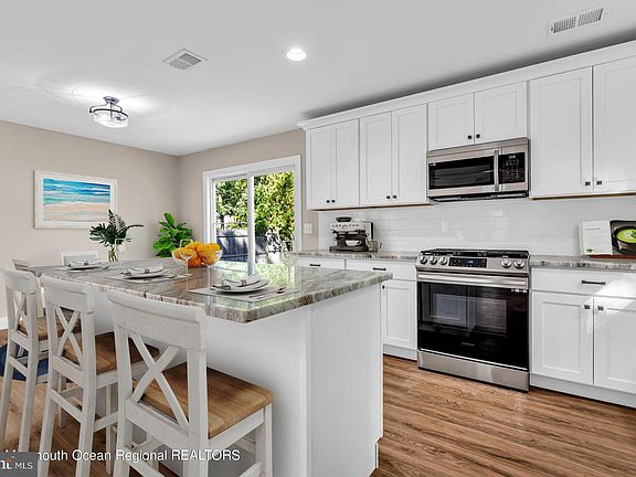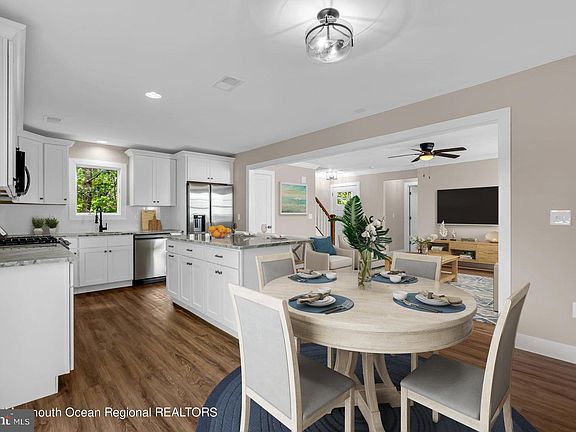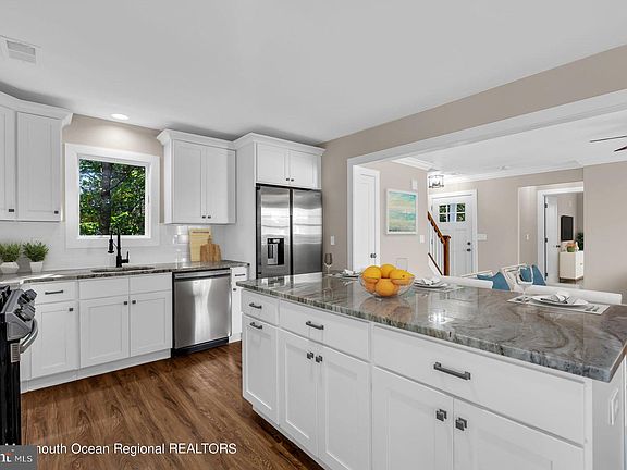Remodeled 3 Bed 2 Bath with view of Deerhead Lake where you can sit and relax on the township beach. Take advantage of $15,000 state grant money if you qualify for down payment and closing cost. Open floor plan with Master Bedroom on the lower level with jack and jill entrance to full bath with ceramic tiled shower surround. Open floor plan with center island large enough for 3 bar stools. Plenty of new white shaker cabinetry complimented with upgraded granite counters and stainless steel appliances all finished in water proof vinyl wood grain flooring. Dining Area with sliding doors leading to large patio surround with inground pool with new liner all fenced in for extra privacy. Upstairs features 2 additional bedrooms with full bath with skylight and tub and laundry room. All new doors and trim work throughout the home with black matte hardware and fixtures throughout. Close to Garden State Parkway entrances north and south, all major shopping and short distances to Marina's and Waterfront enjoyment. Please note: Home and grass has been digitally staged and enhanced for illustrative purposes only.