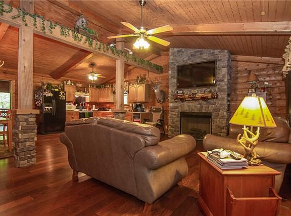 Unique log cabin on 2.08 wooded acres, 55-60 thousand worth of upgrades, wildlife galore, septic approved for a 2 bedroom /2 bath/office,den,exersize rm,great rm w/fireplace open to kitchen & dinning rm/detached garage & workshop/sheds/covered porch,deck