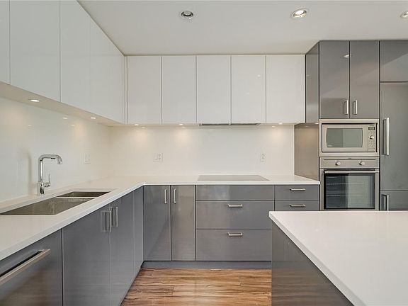 Sophisticated 1 bedroom, 1 bath condo in the Escher building, brought to you by one of Victoria's most trusted developers - Chard Development. This beautiful home offers a generous gourmet kitchen with premier stainless appliances, an open concept plan with a built-in workspace for your personal home office, large walk-in closet in the bedroom, luxurious spa-like bath, high ceilings, expansive windows, plus a spacious east-facing balcony where you can view the iconic Christ Church Cathedral. No need for a car in this walkable and desirable part of downtown, with all amenities just steps away: family park; boutique shops, cafes, groceries and more. Delightful Cook St Village and the picturesque waterfront are also nearby. This impressive suite is equipped with insuite washer/dryer and separate storage locker. The building also features a communal rooftop terrace with lounge, kitchen & BBQ area that provides even more space and dramatic mountain/ocean views.