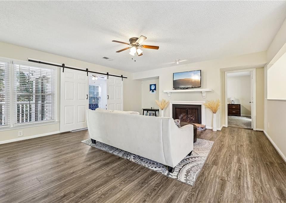 Discover this lovely 2 bedroom, 2 bathroom top-floor condo ideally located just steps from Marietta's Laurel Park. Designed for both comfort and style, the bright and open living space features large windows providing a generous amount of natural light and a cozy fireplace for those relaxed evenings. This roommate-style floor plan features a spacious dining area, sleek kitchen with ample storage and an enclosed den awaiting your personal touch and vision. The primary bedroom offers the ultimate retreat with a private en suite bathroom. The covered balcony is the perfect space for your morning coffee or unwinding after work. Don't miss out on this perfect blend of convenience, comfort and a low-maintenance lifestyle in the heart of Marietta.