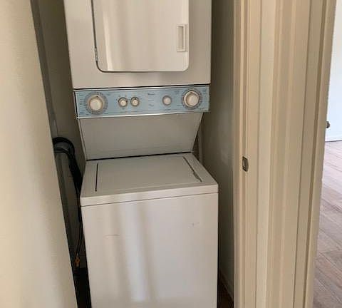 EVERYTHING IS LIKE NEW in this 2nd floor mid-century modern two bedroom one bath apartment. High-end stainless steel appliances in kitchen with new maple cabinets, subway tile backsplash and quartz countertops. New Santa Fe Collections hardwood flooring throughout. Stacked washer/dryer unit in apartment. Eat-in kitchen. Additional front and back outdoor sitting area. Dedicated off-street parking space. Approximately 1/2 mile to Peet's Coffee on Park St and to South Shore Shopping. Other amenities: Cool, mid-century styling, 2nd floor, View of Lagoon. Apartment located at 838 Cedar Street, E, Alameda, CA 94501. One year lease. Small dogs and cats allowed. Tenant pays PG&E for gas, Alameda Municipal Power for electric. There is a $50 application fee.