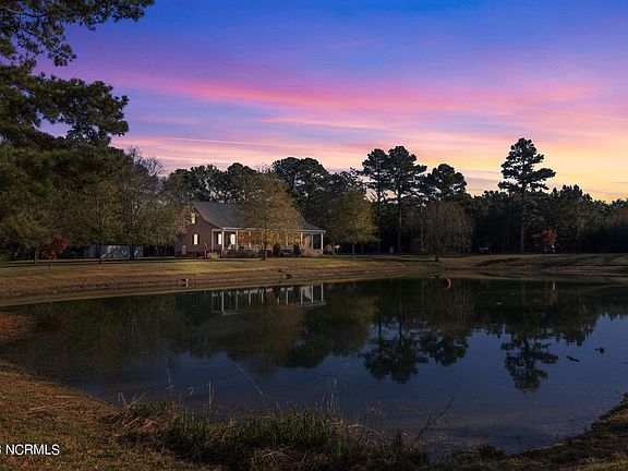 Check out this beautiful, custom built, country home with almost 18 acres to enjoy wild life and recreation in Tyner! Imagine enjoying mornings overlooking your stocked pond on the expansive front porch that spans the entire width of the home. On the cooler days, you can start a fire in the living room and enjoy throughout the open living space which features beautiful heart pine flooring. This home can be great for entertaining family & friends with the large kitchen with an island! The heart pine kitchen cabinets are one-of-a-kind and all lumber was hand picked by the original owners. On the first level, you'll also find two, great-sized secondary bedrooms, both with walk-in closets. The primary bedroom is a true suite with a soaker tub and separate shower, double vanity, and the largest walk-in closet in the home with custom shelving. In the living room, you'll also find a stair case that will lead you up to an entirely floored attic space that can become even more living space, a bedroom, and additional bathroom. It's not every day you find a beautiful home like this one, so be sure to check it out if you're looking for your slice of paradise in rural Perquimans county!