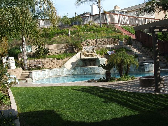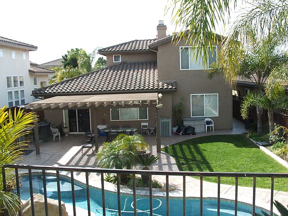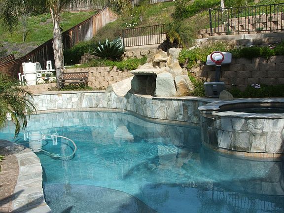 This home has 4 bedrooms and 1 office. There are 3 bedrooms upstairs, 2 are connected by a jack-and-jill restroom. The backyard has a grass area along with a pool that has a built in waterfall and water slide. the house exterior was recently repainted.