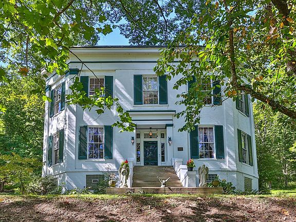 Remarkable, breathtaking, a true work of art are only a few words that come to mind when you walk into The Glen Alice. Built in 1848 for John Porter Dobyns. As soon as you walk through the door you will feel the history. Secluded on a private 5 acre lot with trees as grand as the home. This octagonal home is a piece of history etched in time. A stately stone entrance opens into a formal foyer showcased by an opulent chandelier original to Glen Alice. Your eyes will be engulfed by the beauty as you venture into each room. A large parlor on one wing of the home while a smaller parlor leads into the formal dining room and quaint kitchen. Taking the staircase to the second level you will see the original beautiful hardwood continues to line the floors. All 4 large bedrooms and full bathroom are located on the second level. Right off of the stairwell, you can step into the large sun room that looks over your courtyard. Outside you will find serenity & functionality with the large shop. Furniture, antiques, & art included! Words can not express the beauty within the walls of The Glen Alice, it is one of a kind.