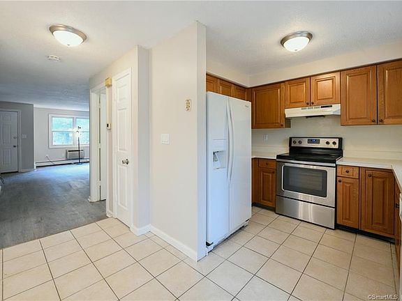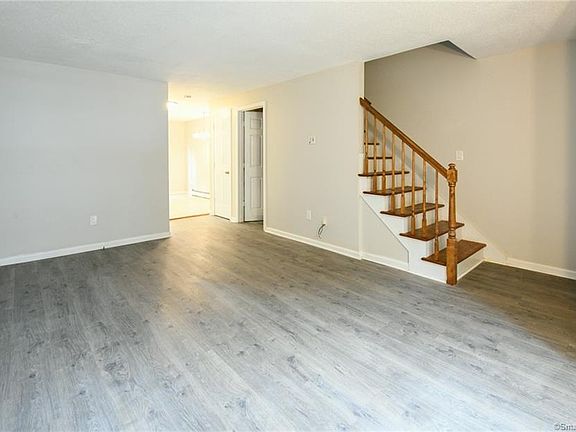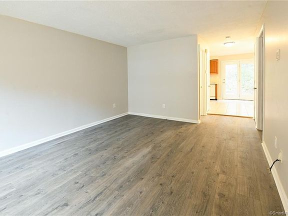 Beautiful 2 bedroom, 1 & 1/2 bath Townhouse condo in the quiet, country setting of Country Village. Bright and sunny unit is freshly painted and features a large living room with brand new Vinyl plank flooring and a spacious eat-in kitchen with pantry, French doors to back deck. Large hallway closet & newly updated half bathroom round out the main level. Second level features a large master bedroom with one wall of closet space, a renovated full bathroom with new tub, vanity and toilet with access from landing as well as the master bedroom, and a second roomy bedroom with plenty of natural light and good closet space. Upstairs linen closet comes in handy. Full basement with bilco door, could be finished for more space, Washer Dryer Hook ups. Full sized detached garage with plenty of room for storage. Lovely grounds to walk and enjoy, including the basketball court and the in-ground pool. Beautiful, nicely cared for home, in picturesque setting....a wonderful find Easy Commute to Hartford or New Haven. City Water~City Sewer~Complex has Pool, Basketball Court~ Oil Heat HOA $335/Mo
