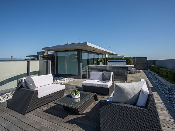 Penthouse residence @ Jameson House by Foster + Partners & Bosa Properties. N & W exp. provide exceptional views of Coal Harbour, NS Mountains, ocean & cityscape. An expansive interior of 2,942 sf over 2 levels w/ 3 bedrms, 2 bathrms & a powder rm. The private 1,310 sf rooftop terrace features a kitchen and boasts 270 degree views. A chef's kitchen is appointed w/ Gaggenau & Sub Zero appliances, Dada Cucina of Italy cabinetry, kitchen island w/ hydraulic operation & bar seating. The bathrms feature fixtures by Dornbracht, Hans Grohe & Duravit & all closets are furnished by Molteni & Co. In-floor radiant heating & A/C ensure year-round comfort. Automated parking for 3 vehicles & valet service provide convenience. Full-time concierge & a meticulously managed building add to the enjoyment.