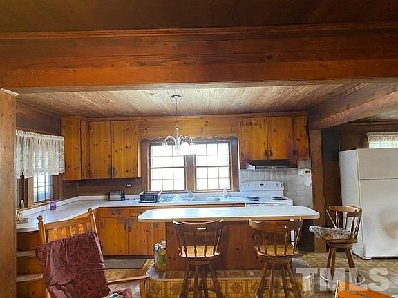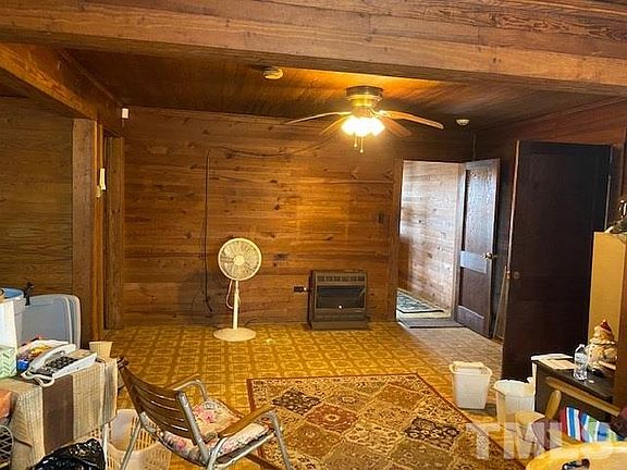 No city taxes and lots of sq footage for the money. Three bedrooms, one bath home with over 1500 sq ft. Home features wood slat walls and ceilings that make it very cozy and solid. Home has lg. kitchen open to family area. Lg, laundry room and separate living room. Lots of road frontage and building w/ 3 shelters and 36x29 work shop w/ new metal roof. Lots of potential with this home.