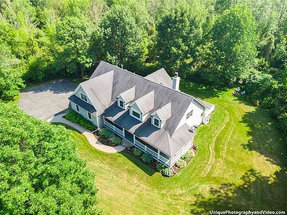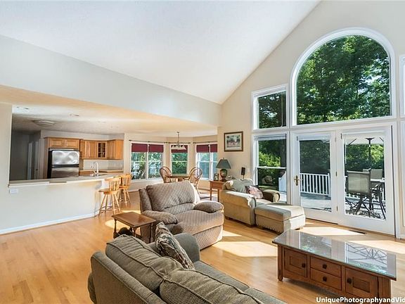 Gorgeous home on private 3 acre park-like setting surrounded by woods; just minutes to lake, parks & shopping! Spacious rooms, open layout & abundant windows & storage make this home extra special; custom built for current owners, every inch was carefully planned! Features include a first floor master suite with walk-in closet & large bath with access to private yard & hot tub * First floor office * 2 story foyer and great room with wall of windows & floor to ceiling wood burning fireplace * Large kitchen with walk-in pantry & all appliances incl. * Open kitchen / dining / great room layout, perfect for entertaining * hardwood * All oversized bedrooms, 3 of 4 with huge walk-in closets * Wide & deep garage (25x25) * new H2O tank * 16x40 rear deck w/ hot tub & 60x6 front wrap around porch