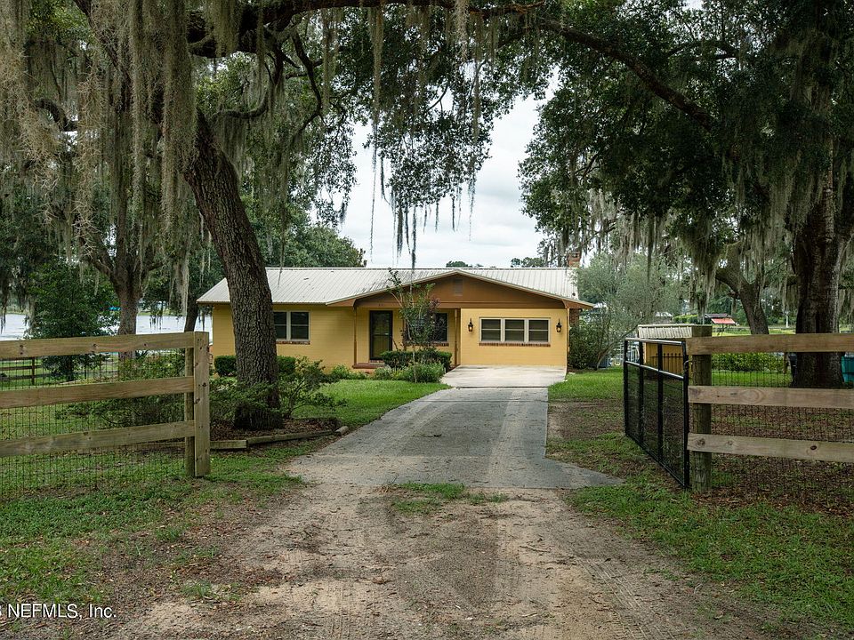 Welcome to this enchanting world of lakefront living located in the quiet and scenic subdivision of Grandin Lake Shores, Interlachen. This home is a testament to enduring quality. Inside, you'll discover three bedrooms two bathrooms, baths recently updated. Easy to keep clean tile throughout. Thoughtful upgrades HAVAC system, metal roof, Pella windows in great room. Relax or entertain in the lakeside great room that offers magnificent views of Clearwater Lake. Complete with a cozy fireplace, this space promises memorable moments of warmth and companionship. Step into the bright and inviting kitchen, where Corian counters serve as the perfect workspace for culinary creations. As a resident of the homeowner's association, you have access to boat ramp to Grandin Lake. Navigable canal from Clearwater to Grandin Lake. Come explore the charm, tranquility, and high-quality living offered by this lakefront home