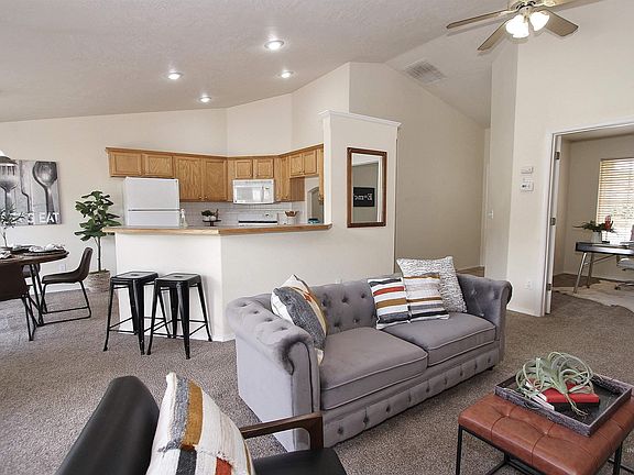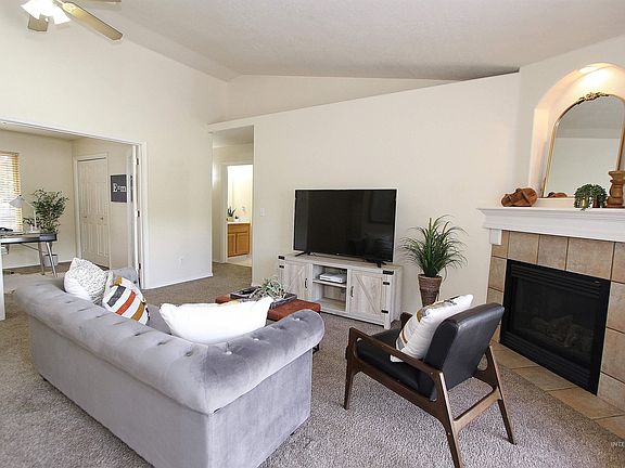 Tucked away in a desirable Eagle neighborhood, this home is perfectly laid out for function and easy living. The floor to ceiling windows makes it feel clean and bright. Open concept kitchen and vaulted ceilings give this home a fresh and open feel. The 4th bedroom or office features lovely French doors with glass to let the natural light in! Fully fenced with mature trees, the back yard is ready for your summer evenings BBQs. This would be a wonderful home for downsizing, first time home buyer or second home. So close to shopping, schools and just about anything you want to do outdoors. New exterior paint, deck stain, kitchen flooring, sink & faucet. The roof, furnace and A/C replaced in the last 4 years.