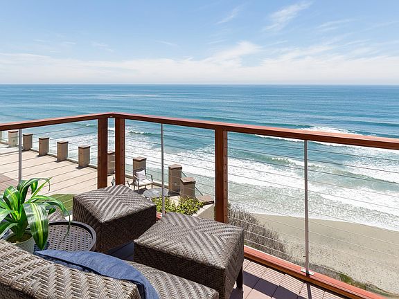 Available for 1.5 mo, from April-May 31. For $14k/mo Or Starting Nov 1, for longer term (off-season at $13.5k/mo or year lease for $16k/mo), or monthly at the following rates: Nov 27-Dec 27: $14k, Jan: $14k, Feb: $13k, March $13K, April: $15k, May $14k. Also less than one month options for the following weeks: week-long + stays available: between Nov 1-Nov 21 for $3,500/wk + 10% city tax. It is already booked June-Nov 2025, so I cannot accept a 1 year lease until Nov. Yearly lease rate is $16k/mo, Available for seven night minimum. 1-week minimum vacation rentals stays up to date through vrbo and airbnb. Perched above the bluffs & overlooking one of San Diego's top Surfing locations - Beacon's Beach. Just 5 houses separate you from the entrance to Beacon's access point. Enjoy endless sunsets, and sit down view of the surfers both from the balcony and inside the home - in the living room and Master bedroom. The unsurpassed view from the interior makes this house the place to be in the peak-season or off-season - out of the colder weather, but still gorgeous Ocean views. This upstairs duplex unit lives like a single family home, with private access, 2-car garage, separate driveway with room for 2 parked cars in the driveway. This property has recently had a complete interior face lift - with gourmet kitchen, luxury Master Suite & designer finishes throughout. It has a large open Great room with ocean views from 80% of the home. The washer and dryer are located next to the huge walk-in pantry. It is has everything you need and more, and is a truly magical place that you will not want to leave. Only service animals will be considered as per the HOA rules. There is a virtual tour link of the Matterport 3D Walk-though of the property in this Zillow ad. Available for 1.5 mo, from April-May 31. For $14k/mo Tenant pays for Cable, Gas & Electric (solar) & Water - Trash included. Sorry but only service animals (not Pets) will be allowed. No Smoking of any kind in the unit or on the property Unit has A/C & EV charger in garage