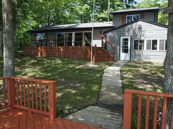Gorgeous Smallwood lake home with 242 feet of sandy bottom Lake water frontage! This home is 3 bedrooms, 2 baths, sunroom, 4 car detached garage with 14 ft X 27 ft lean to. Totally remodeled inside and out. Three decks with great waterfront views. Double glass sliding doors from open concept living/dining area that leads out to huge deck on waterfront side. Concrete boat launch for your water toys. Option to Sell completely furnished!!! Interior of the home has a kitchen with custom counter tops, new kitchen cabinets, new stainless appliances, new Allure flooring, new carpet through out, and a new stone fireplace added. Central air & heat, ceiling fans. Has a lovely cottage style garden. Totally turn key and in move in condition! Lot is at end of culdesac with minimal traffic. This home is perfect for a full time family home or part time vacation home; as it is 2.5 hours from Detroit Metro areas, or 1.5 hours from Flint surrounding areas. Call for your appointment to view.