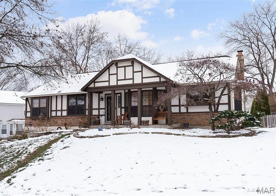 Incredibly well maintained 3 bedroom, 2 bathroom, Tudor style ranch home with an oversized 3 car garage in the Francis Howell school district! At just under 3,000 square feet of living space, your family will have plenty of room to spread out. Enter through the foyer, flanked by a separate formal dining room and the French doors of your private office, into soaring vaulted ceilings of the family room. Gorgeous brick wall with woodburning fireplace and stunning Koa hardwood flooring throughout. Open concept floorplan walks into the spacious remodeled kitchen, with solid surface countertops, stainless appliances and custom center island. The primary ensuite bed and bath offer tons of space with double vanities, soaking tub and separate shower. Additional privacy and style throughout with solid wood doors. Main floor laundry room for convenience. Fully finished lower level with recreation room creates the perfect place for hosting guests, or simply relaxing after a long day. Out back is a large low maintenance deck leading to a partially fenced yard. The massively oversized 3 car garage has additional space for a workbench and extra storage. This home features a ton of upgrades and quality touches you just have to see for yourself, so schedule your showing ASAP!