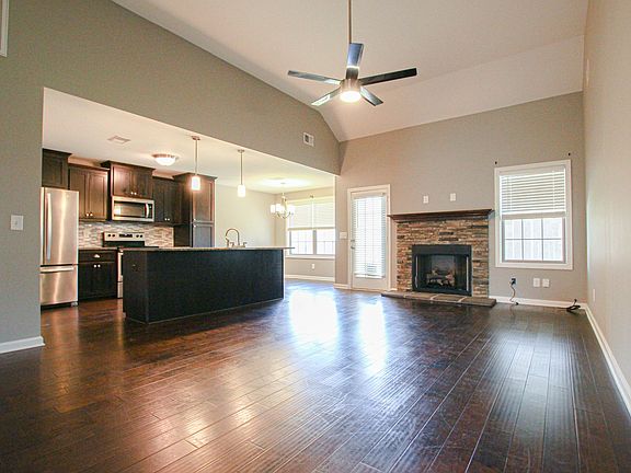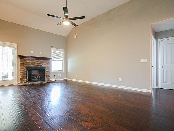 Adorable ranch home with great open floor plan! Large living room with stone fireplace, open eat in kitchen with oversized island, granite counters & stainless steel appliances! Spacious primary suite full bath, generously sized guest rooms, two car garage, and great outdoor space with covered patio & fenced yard!
