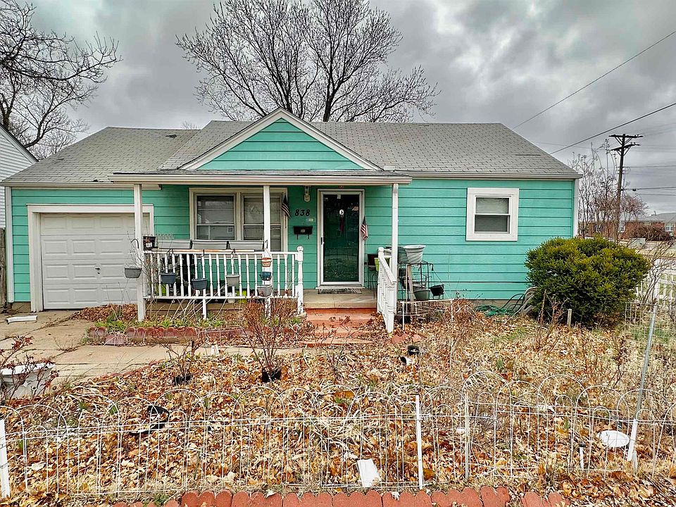 Adorable larger 2 bedroom, 1 bathroom home with 1 car attached garage and privacy fenced back yard with 2 sheds & back deck. Conveniently located near Lincoln & Oliver in a cul-de-sac neighborhood, this home is only a stones throw from I135 & Kellogg. HVAC & Water Heater are newer. The large kitchen/dining area was an 16X18 addition to the original house. The hardwood floors & solid house coupled with your imagination can produce endless possibilities for this home.