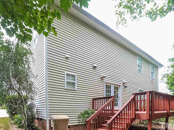 Built in 2006, this Raleigh two-story home offers hardwood flooring, a covered front porch, a gas fireplace, granite kitchen countertops, a loft, and a two-car garage.