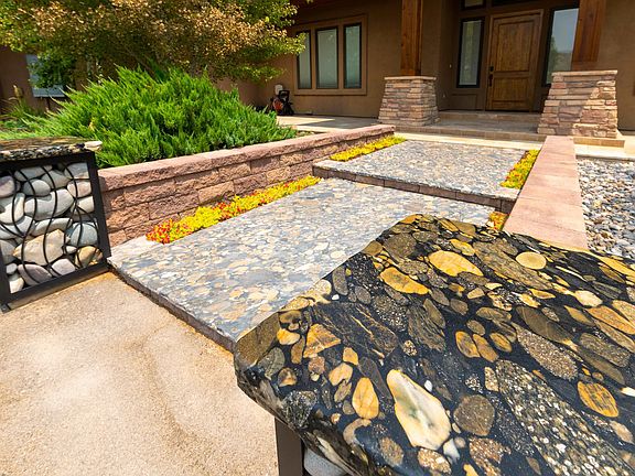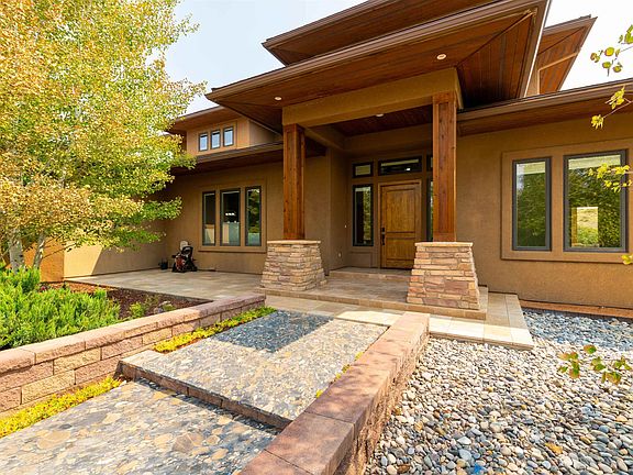 Featuring characteristics of Frank Lloyd Wright’s distinctive architecture, this custom-designed and built home has been lovingly cared for and maintained, and pride of ownership shows in every corner, inside and out. The main level embraces a chef’s kitchen with stainless appliances including a Capital culinary range with double ovens and rotisserie. A custom designed granite table with banquette style seating anchors the overall space while the double-sided, two-story stone fireplace creates a warm and inviting area for family gatherings and entertaining. The main level also features a large primary suite with stunningly designed ensuite and private access to the rear patio and hot tub. The dining area, living room, office, guest room/guest bath, and laundry area finish off the livability of this level. Upstairs you will find two additional bedrooms each with private baths. The large open loft provides architectural interest and a versatile living space for kids’ activities, family movies or game night, home office or other living or working needs. The deck out this space overlooks the large backyard and desert landscape beyond. An oversized 3-car garage and large 40x40-foot workshop provide ample space for cars, toys, and workspace. The home’s outdoor area is ideal for entertaining and relaxation. The all-around mature landscaping has been designed to complement the splendor and ruggedness of the surrounding desert landscape. Providing beauty, durability and weather resistance, the front porch and back patio are tiled in travertine. The back patio space is further defined by a stone wall, cedar columns and a built-in pellet grill. All combined, you have a warm and inviting space for spending time with family and friends, outdoor dining, or star gazing. Information is considered reliable, buyer should verify.