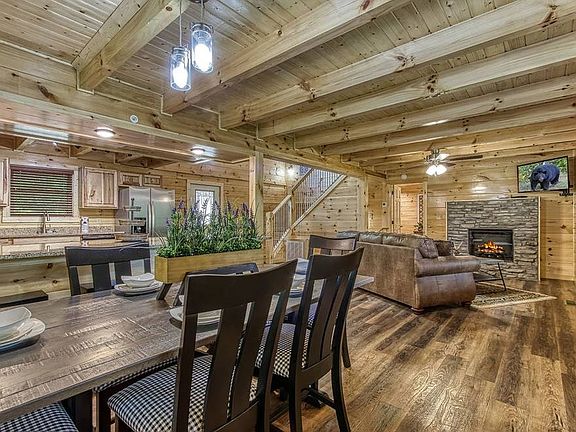 Views! Up to $10,000 seller paid closing costs with acceptable offer! Located less than 1.5 miles to the heart of the Parkway in Pigeon Forge, this new construction 5 bedroom, 5 bathroom cabin comes fully decorated & furnished with everything you could need for use as a short-term-rental or vacation home. Current rental projections are 160K annually, based on last year's performance of the exact floor-plan constructed by the same builder and developer. Positioned along the ridge, this cabin boasts mountain views from any of the multiple covered back decks, plenty of gathering spaces including a game room with pool table, and a theater area with true theater seating! Other features include: new stainless steel appliances, washer & dryer, granite counter tops throughout, 4K Roku TV's in every room, tongue-in-groove knotty pine and log walls, durable luxury vinyl plank flooring, and hot tub with privacy screening. There are 4 King suites and a bunk room, each with it's own private bathroom, in addition to 2 sleeper sofas, bringing the capacity to accommodate 16 guests! This new cabin development is very unique with it's superb location, easily accessible and in close proximity to all of Pigeon Forge and Gatlinburg's many attractions and dining experiences. Competitively priced to sell, this one will not last long! Photos and finishes are similar. Estimated completion 9/1/2023. Call today for additional information. All information deemed reliable but not guaranteed, buyer/buyers agent to verify all information. View 3D Matterport of our 8/8 bath for similar finishes/decor at https://my.matterport.com/show/?m=Uj1og9b7oMy