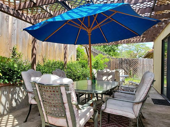 Lovely Redding Home! Sustenance with comforts of this desirable 3 bed, 2 bath in Tanglewood Village for the perfect walking distance to central location in Redding for conveniences and services. Vaulted ceilings for the master bedroom & living room. Spacious master bedroom with stained wood crown molding & mirrored closet. Eye appealing arched pass-throughs, laminate flooring, berber carpets in bedrooms, shaded nice back patio area, compartmentalized master bathroom, and practical kitchen with breakfast bar, quaint dining room. Gated private entry that is court like front yard. Community pool and hot tub.
