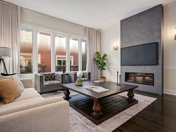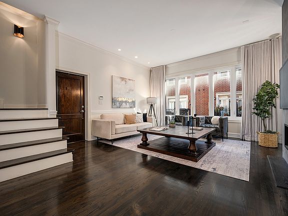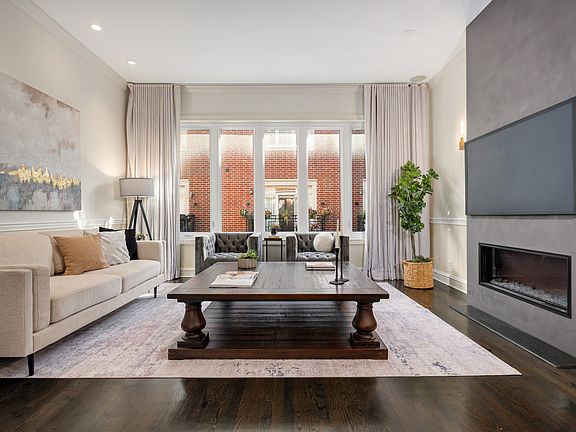 In the heart of the city's sought-after River West neighborhood, this elegant 4 bedroom, 3.5 bath townhome in a gated boutique community lives like a spacious single family with 3,000+ square feet of exquisitely-updated space. On the main level, expansive living and dining areas feature 10-foot ceilings, newly refinished walnut-stained hardwood floors, a dramatic new fireplace and oversized windows with lots of natural light. The chef's kitchen has abundant storage with 42-inch cabinets, new stainless appliances and new quartz countertops including a large waterfall-edge island with plenty of extra space to work and comfortable seating for three. The luxurious primary bedroom is enhanced by customized wall coverings, a stylish tray ceiling, and a tasteful en suite bath with dual vanity, soaking tub and roomy dual-head walk-in shower. The additional top floor living area includes a wood-burning, stacked-stone fireplace and opens to the private rooftop deck where you'll enjoy ample room for al fresco relaxing and entertaining. The ground floor has new tiling and features a new walk-in wine cellar, a full bathroom and an outdoor space. Other recent updates throughout this meticulously-maintained home include fresh carpeting upstairs, a resurfaced roof and new windows throughout installed in 2019. The home has dual-zoned cooling and heating and a 2 car attached garage. This is a unique opportunity to have extra space in such a central accessible location - ideally situated between all that River North, Wicker Park and the West Loop have to offer. This is fee simple so short term rental could be possible.