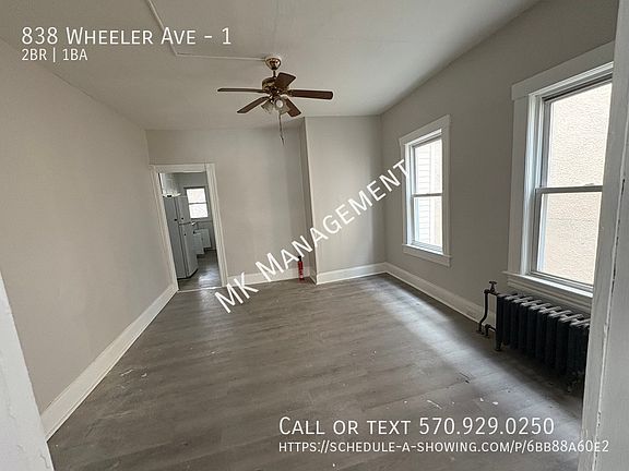 This is a 2 bedroom, 1.0 bathroom, apartment home. This home is located at 838 Wheeler Ave APT 1, Scranton, PA 18510.
