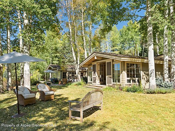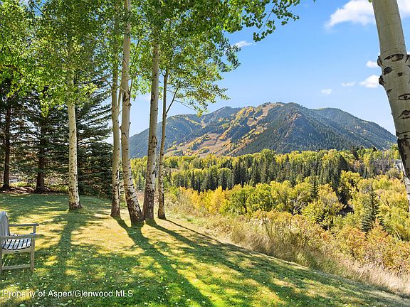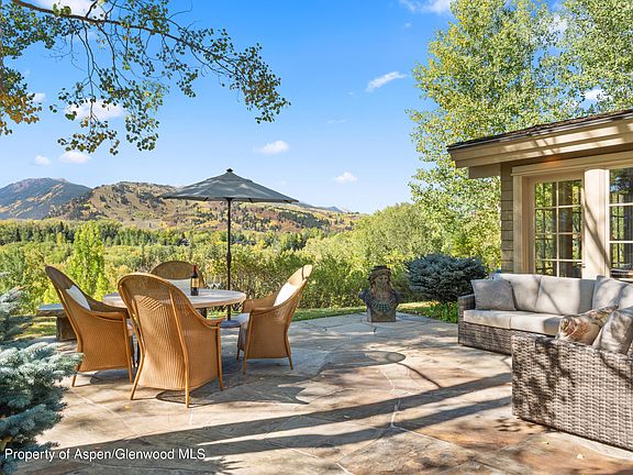 Located on prestigious Willoughby Way, this 5,464 square foot country style home is situated on a flat, beautifully landscaped property which boasts unobstructed views from Aspen Mountain across the valley ski areas. The desirable single-level open floor plan consists of 5 bedrooms and 4 1/2 baths including a separate one bedroom guest wing and exercise room for privacy. Interior features include hardwood and stone floors with timber beams throughout and a large flagstone patio and outdoor living space with endless views, easily accessed from the master suite, dining room, living room and exercise room. Offering over an acre of land for privacy and enjoyment, plus convenient proximity to the Rio Grande Trail and downtown, this home is hidden gem.