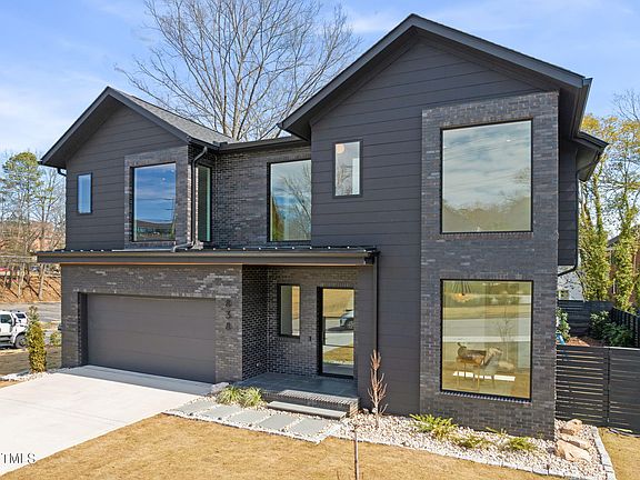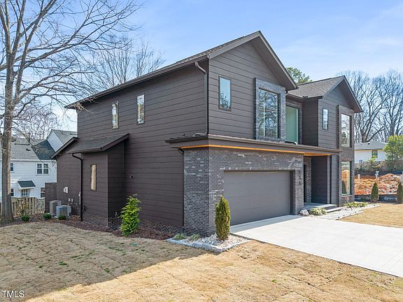 Experience contemporary luxury within walking distance to Raleigh's Village District in this new build by Kennon Construction. The striking black and wood-accented exterior sets the tone for a stunning interior. The kitchen features a curved plaster range hood, walnut cabinets, and a matte marble double waterfall island, flowing into a well-appointed scullery. Step out onto the oversized screened porch with gas fireplace then through to the stone patio for ideal outdoor living. Bask in the living room's natural light through the oversized windows or close the recessed drapery and relax by the fireplace. A guest suite/office with ensuite bath rounds out the first floor. Upstairs, the primary suite offers a spa-inspired bath with a soaking tub, marble shower, and a walk-in closet connected to the laundry. Three secondary bedrooms and a spacious bonus room complete the second floor. Smart lighting, wired sound, and irrigation add to the home's thoughtful details.