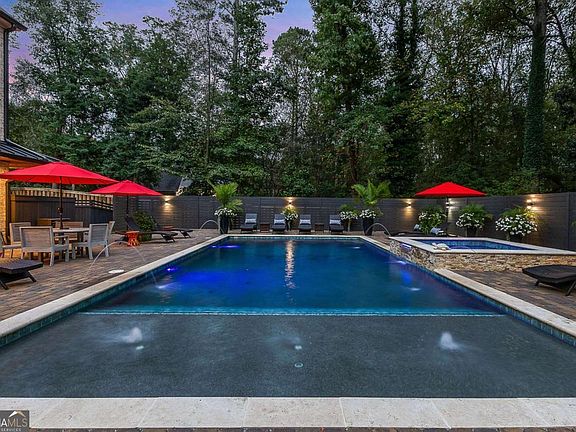 Rarely does a home come on the market that transports you to an entirely different place from the moment you enter the front doors. This Sandy Springs stunner is reminiscent of the beautiful homes in the mountains of Salt Lake City but located in an incredibly convenient area of north Atlanta. After driving up to this stately, newer construction property, you'll immediately notice the incredible curb appeal with lushly landscaped spaces on the corner lot, 4-sided brick and stone construction, a circular paver driveway and an oversized 3-car garage. As you approach the covered, vaulted front porch and enter the custom iron doors, you'll be taken aback by the flood of natural light, soaring 12' ceilings, wide-plank white oak hardwood floors, brick & stone accents and open-concept entertaining spaces. This home is perfectly laid out for daily life and entertaining alike. You'll enjoy the convenience of one-level living that is achieved through a primary suite on its own wing of the main level with several guest suites on the other side of the home. A massive chef's kitchen and scullery, large laundry room, oversized spa-like powder room and two beautiful covered porches mean you truly never have to leave the main level. The kitchen is awe-inspiring with its vaulted ceilings, massive center island with waterfall Quartzite countertops, luxury Wolf/SubZero appliance package and attached scullery/walk-in pantry. There's also a show-stopping, arched wet bar that's ideally situated for serving food and/or drinks. The primary suite feels like you've entered a luxurious spa. A double-sided fireplace separates the vaulted lounging and sleeping areas within this serene space. The ensuite bathroom is highlighted by a stunning walk-through shower for two, clawfoot tub beneath a dreamy fireplace wall and two large custom walk-in closets. The expansive space over the 3-car garage features an amazing office or bonus room with a wet bar, bedroom, full bathroom, second laundry hookup and ample storage - perfect for a parent, guests, au pair, older child, etc. The finished basement is an entertainer's dream! The 10' ceilings and amenities like a large bar (with a serving window to the rear patio), game area, stone clad wine room, 800sf gym, sauna, golf simulator, full bath and large fireside living room create a space that everyone will want to come hang! The crown jewel of this 1-acre property is the unbelievable private rear space. Your oasis features an oversized, heated Pebbletec pool and spa, large fully-fenced yard, a separate fenced area for your four-legged companions and a covered, vaulted rear porch with fireplace and outdoor grilling kitchen. This is a dream home that you'll truly never want to leave and that everyone will want to visit! The photos just don't do this property justice. Conveniently located to all major highways, restaurants and retail, fantastic area private schools and Dunwoody Country Club.