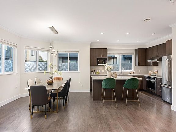 Welcome to Mapleville, a collection of 12 private townhouse in the centre of Richmond. This charming corner unit offers 3 bedroom, 2.5 bathroom plus den, 1,747 sqft interior living space,double garage, and fully equipped air conditioning (individual remote controller) and HRV. The main floor features an open-concept layout connecting the living, dining, and kitchen areas — complete with high quality appliances and modern finishes. The upper floor includes a spacious primary bedroom with its own private balcony, and other 2 additional bedrooms. Recent updated include new paint wall,and laminate flooring on all three levels. Steps from schools, parks, shops and daily essentials. School catchment: General Currie Elementary, Palmer Secondary. Open House: Nov 29 & Nov 30 (Sat & Sun) from 2-4 pm