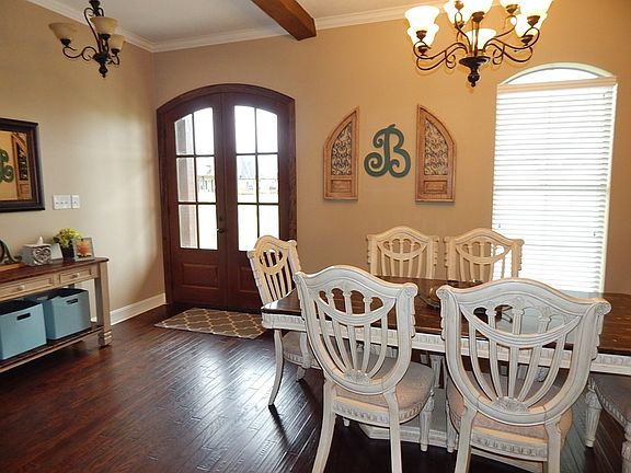 Picture perfect Acadian-style home in Bridgefield Estates, Bridge City ISD. Open concept kitchen/dining/living has beautiful wood flooring, gas log fireplace, decorative beam ceiling and built-ins. Kitchen has large island/breakfast bar, built-in stove/oven and beautifully glazed cabinets. Covered patio with stained concrete floor overlooks large backyard with 8-12 ft pond in back. The 704 sq ft garage has separate door for storage & lawn equipment.