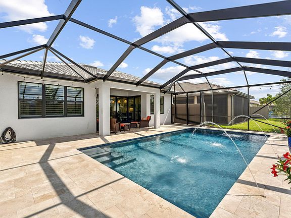 Welcome to your luxurious dream home in The Fields! This stunning ranch-style new construction is the perfect blend of style and functionality, featuring 3 bedrooms, 2 and a half bathrooms, 2 car garage. The home boasts many upgraded features, including an upgraded kitchen, upgraded bathrooms, tile floors throughout, making it the epitome of luxury living.The gourmet kitchen is truly a chef's dream, with stainless steel appliances, quartz countertops, and custom cabinets providing ample storage space. The oversized island provides the perfect space for preparing meals, while the open floor plan allows for seamless entertaining.This home also features a screened-in pool, providing the perfect outdoor oasis to relax and soak up the Florida sunshine.
