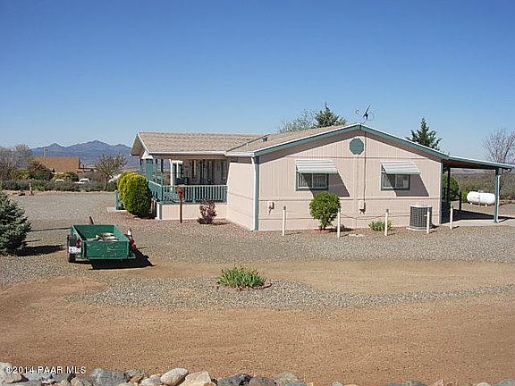 ABSOLUTELY ONE OF THE BEST IN TOWN THIS CLEAN 4 BEDROOM 2 BATH HOME WITH SPLIT FLOOR PLAN WITH VIEWS FROM EVERYWHERE LANDSCAPE TO PERFECTION LARGE COVERED FRONT AND BACK PORCH TO SIT AND SEE THE SUN RISE AND SET JUST A FEW MILES TO PRESCOTT AND PHOENIX LARGE KITCHEN WITH BOUNS ROOM OR DEN. THIS IS A TURN KEY HOME AND IT SHOWS IT. ALSO SHED WITH RV HOOK UP TAKE THE BEAUTIFUL DRIVE TO LOOK AT THIS ONE