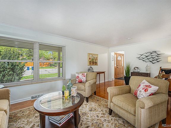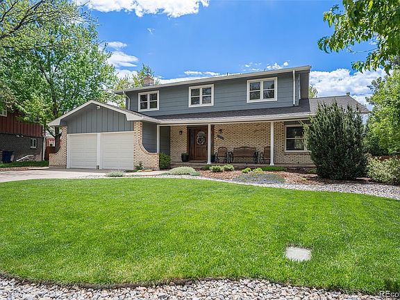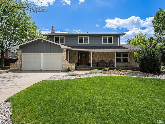 White cabinet's line the walls, offering abundant storage for cookware, utensils, and pantry staples. Adjacent to the kitchen, is the formal dining area. The main floor family room with a gas fireplace is a great place to relax.The hardwood floors continue to the upstairs.The upper level boasts three spacious bedrooms and a primary suite for 4 bedrooms on the upper floor. The primary suite has 2 closets and a remodeled en-suite bathroom with double sinks. A second full bathroom, conveniently located in the hallway, features a combination tub/shower. The basement has been recently finished with polished concrete floors, a large rec. room, bedroom and bathroom. The laundry is light and bright with additional storage space. This home has the best backyard in the neighborhood. The large sprawling stone patio sets the stage for outdoor gatherings. You won't find a better place to enjoy the outdoors, a built in gas grill with built-in mini-fridge, as well as, an additional bar area that boasts a second mini fridge for all your refreshment needs. The large gas fire pit offers a tranquil place for all those cozy nights under the Colorado stars. A show stopper for all your friends and family. Also a covered area with lots of seating space is the perfect place to relax and entertain. The backyard isn't just a space—it's a sanctuary, a retreat, a place where laughter echoes and bonds are strengthened. The solar system is owned and keeps the utility bills low.