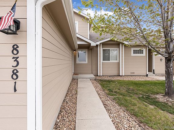 Great 3 bed/ 2 bath end-unit in Welby Glen! This well maintained end unit is ideally located on a quiet cul-de-sac lot. The open & bright floorplan features vaulted ceilings and beautiful hardwood laminate hardwood floors. Cozy up by the fireplace on cool Colorado evenings. Home cooks will love the ample cabinetry, SS appliances & open layout. 2 spacious bedrooms & a full bath on the main floor. Retreat to your master suite upstairs boasting vaulted ceilings, an ensuite full bath w/ his & her's sinks and walk in closet. Relax all summer on your private patio or grow a garden in the open area. 2 car attached garage included. Book your showing today!