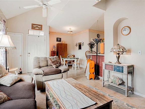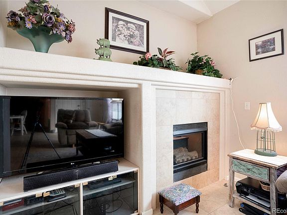 Great price reduction!! Seller is motivated, please submit all offers, or call listing agent for details.... This is a quiet, ground floor, end unit with beautiful sunset views of the mountains. The home features higher ceilings, a gas fireplace, built-ins for your collectables and an open, bright floor plan. The flooring is updated with tile and laminate flooring, making it easy to keep clean. The 2 bedrooms and 2 bathrooms are separated by the living area and the kitchen, offering privacy. There is a one-car detached garage with additional shelving and hanging rack, and off-street parking as well. There is a nice pool and tennis courts and a club house available for rent. This is a very comfortable home, one not to be missed. Please make sure to view the garage behind the property. Great location near the mountains - easy access to C-470 and 285 for your weekend getaways.