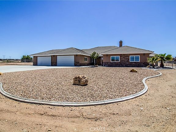 EXQUISITE OAK HILLS ESTATE! Absolutely spectacular POOL home with PAID-OFF SOLAR and an ADDITIONAL DWELLING UNIT beautifully situated on a 2.35 acre lot with a MOUNTAIN VIEW at the end of a CUL-DE-SAC in one of the most desirable areas in Oak Hills. Featuring 6 beds, 5 baths and a whopping 4,429 sq ft of living space, no expense has been spared in this luxury home. Wood-look vinyl floors, high ceilings crown molding and trendy fixtures give this home that high-end feel and look. The functional split floorplan has an open concept with a large living room and an absolutely stunning kitchen with gorgeous granite counter tops, stainless appliances and knotty alder cabinets. The exceptionally spacious master suite has an incredible bathroom with a walk-in tile shower, large soaker tub, dual vanity and walk-in closet. The large bedrooms on the opposite side of the home have a thoughtfully designed jack-and-jill bathroom between them. The front of the house has a bonus room that could be used as a TV room, office or even and additional bedroom. Inside of the home is a wonderfully designed ADU with a attractive kitchen, large living room, and a master suite that is wheel-chair accessible. There is also a spare bedroom, hall bath and laundry area. The back yard is an oasis in the desert with spa with water cascading into an astonishing solar-heated pool, concrete deck, block wall and wonderful landscaping. The covered patio has a built-in barbeque, sure to make for enjoyable summer evenings entertaining family and friends. The RV parking is equipped with 30/50 amp power and dump hookup. The paid-off solar means low energy bills. The added concrete flat-work, Conex containers and four-car garage make for plenty of storage and parking. This is a once-in-a-lifetime property that is sure to make for your forever home. Sq. Ft. not verified. Information deemed reliable, not guaranteed.