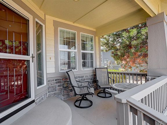 Immaculate Maintenance Free Paired Home! Situated in the heart of the 55+ Heritage Todd Creek neighborhood, this 2 bedroom, 2 bath home backs to a greenbelt between it and the homes behind. The large family room features a 2 sided fireplace and adjoins to a private dining room with both rooms connecting to the kitchen. The kitchen features granite counters, newer appliances, gas range, and corner windows over the sink bathing the room with light. The Primary Bedroom with views to the back yard area has an on-suite bath and connected closet. The main level also has a 2nd bedroom and full bath. Step out the back sliding door onto a covered patio perfect for enjoying morning coffee or nice evenings looking onto the park-like back yard area. The basement has carpet on the floor and is ready for your finishing touches. Heritage Todd Creek offers a beautiful and vibrant clubhouse with 2 pools, a fitness center, billiard room, Gold Pro Shop/Driving Range/Course, Tennis & Pickleball Courts, and a fantastic restaurant and bar. Simply an amazing community to make your new home!