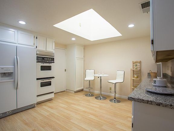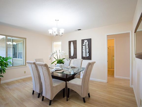 SUPER NEW PRICE! BEAUTIFUL LOCATION, hard to beat! NEW floors throughout. NEW, freshly painted walls and ceilings throughout. NEW tiled floor in bathrooms. NEW kitchen granite counter top, cook top, hood, canned lighting and kitchen sink! High vaulted ceiling in living room. Dual aspect windows in dining room & office/den plus the large skylight in the kitchen allow an abundance of natural light into the home. Newer double glazed windows and patio sliding doors installed. Updated bathrooms with NEW sinks. Large patio overlooking picturesque lake and mountain rage makes for great outdoor entertaining. All in all, 1803 sf. 2 bed, 2 bath plus den or 3rd bedroom and oversized two car attached garage with work bench. Located inside the Villages Golf & Country Club, 24/7 manned security, a host of activities, golf, swimming, tennis, pickle ball, hiking and bocce +. Club house offers fine dining, Bistro for casual indoor/outdoor dining. Beautiful home, beautiful location = beautiful life.