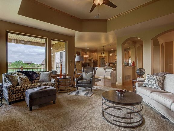 An exquisite ranch with amazing views & privacy! Attention to details is evident from the front entry to the walk out finished lower level. This stunning home features 5 bedrooms and 3 baths with 4,871 finished square feet.The main level hosts a master suite with a master bath retreat & dual closets.There is a grand dining area just off the the family room & the kitchen features beautiful granite counters, a spacious work island, custom cabinets & Viking appliances. A beautiful deck wraps off the family room & kitchen providing wonderful views over the back yard, putting green, & open space. The home boasts garage space for 5 cars with an RV entry. The finished basement is stunning - custom tile work, a workout room with laundry, pool table & gaming area, 2 bedrooms with a full bath, & a bar area that will be the toast of any gathering. It all opens onto a fantastic stamped patio& back yard with fire pit! This amazing home will make you feel like you've found your forever home.