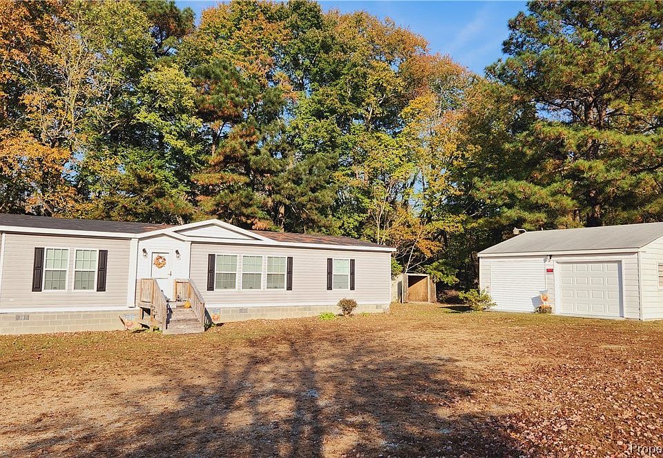 Like new home built in 2021 with 2 car detached garage. Home features open floorplan with neutral colors throughout. Open kitchen with breakfast bar and all appliances opens to dining area. Split bedroom plan w/ all bedrooms offering walk in closets. Master bedroom w/ private bath featuring vessel tub, custom tile shower & dual sink vanity. Situated on over 1.4 acre corner lot. I- beam hoist conveys.