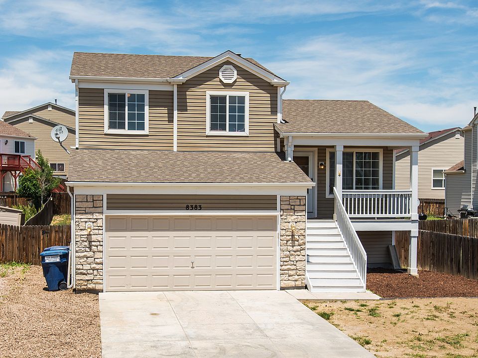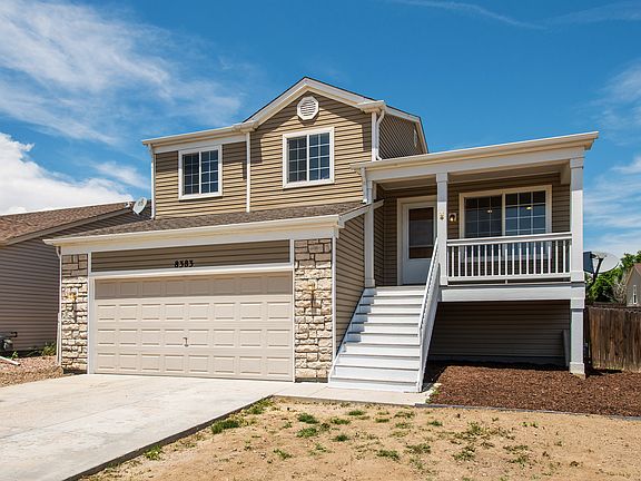Beautiful move in ready home that has been recently updated* Great area that is close to Fort Carson and shopping/restaurants* You also a have parks and playgrounds within walking distance as well* 2 car attached garage* Entry has a covered porch to relax on* As you head inside you will find newer carpet and paint throughout* Main level living room/kitchen has vaulted ceilings* Eat in Kitchen has wood floors, solid countertops, and a Dining nook with a bay window* Lower level has a cozy family room with a fireplace* There is also a half bath and walkout to the large backyard* Basement is unfinished for the time being so it makes perfect storage or can provide future expansion* The top level has 3 bedrooms* The Master bedroom adjoins to a full bath*