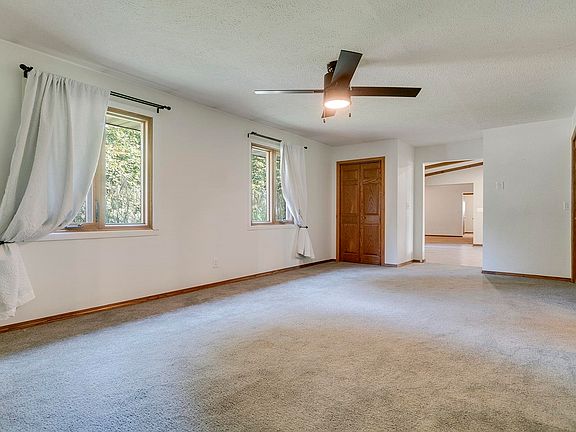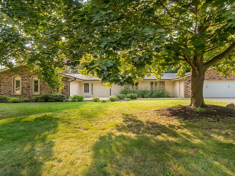Nestled on this wooded lot in Meridian school district you will find this sprawling brick front ranch with 4 bedrooms and 3 baths. This home has a completely remodeled kitchen in ’21 with beautiful upgraded white cabinets with a stunning Quartz countertop, curved breakfast bar that seats 4, tile backsplash, newer SS mostly KitchenAid appliances, SS hood vent ’23, reverse osmosis, pantry, disposal, and a slider to the back deck. The eat-in dinette area has a woodburning black fireplace with a wood mantel, cathedral ceilings with beams. This could easily be turned back into an in-laws suite with a family room and additional master bedroom/MBA at one end and a master bedroom/MBA along with 2 other bedrooms & main bath at opposite end. Laundry in on main level with washer/dryer staying. LL partially finished with craft room with tons of cabinets, and rec rm with wood walls. Picturesque backyard with .9 acres, large deck, partial fenced area, mature trees, invisible fence around entire property, garden, roof ‘23, leaf guard gutters ‘23, new well pump ‘22, gas wtr heater ’17, water softener rented ($22/mo), 2 car wide garage is extra deep giving lots of storage plus it’s all heated AND air! House has 2 furnaces (Aprilaire on one), 2 a/c & 2 Nest, new mower (20 hrs) and lawn equipment can stay.