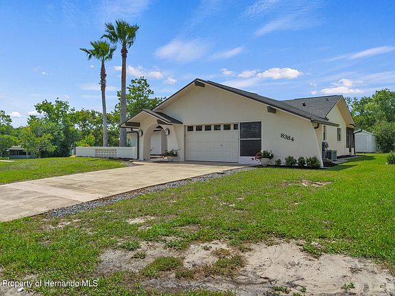 This Home is Active Under Contract. Everything is Done, Just Move in and Enjoy this Beautifully Updated Contemporary Home, No HOA or Deed Restrictions. Features Include New Roof & Gutters (2020), New Exterior Painted (2021), Irrigation System has New Well Pump, New Drop Pipe and New Controller (2021) This Three Bedroom, Two Bath Home Has an Oversized Two Car Garage with a Split Floor Plan and Plenty of Entertaining Space. Vaulted Ceilings in the Great Rm and Dining Rm Make the Space Feel Open and Airy. The Remodeled Kitchen has as an Abundance of Beautiful Cabinets, Granite Counters, Custom Built Island, New Ceramic Tile Floor, Newer Appliances and Walk-in Pantry. All Household Appliances will Remain with the Home. The Master Suite Features a Large Walk-In Closet with Custom Shelving and an Updated Bathroom with Granite Counter, Newer Vanity and Walk-In Shower with Glass Doors. The 2nd and 3rd Bedrooms are Carpeted with Generous Closet Space, and Share the Full Hall Bath. Updated Hall Bath Features a Tiled Tub/Shower Combo, Newer Ceramic Tile Floor, and New Kohler Toilet. Inside Laundry Room includes Washer & Dryer Ceramic Tile Floor, Cabinets and Utility sink. The Great Room, Hallways & Master Suite have Beautiful Engineered Oak Hardwood Floors. Off the Kitchen is the Newly Remodeled Screened Lanai with New Ceiling Fan.The Perfect Place to Relax and Enjoy a Glass of Wine. The Home is Situated on a Beautifully andscaped, large corner lot .30 acres with Palm Trees & Front Courtyard with a Large Covered Entry.