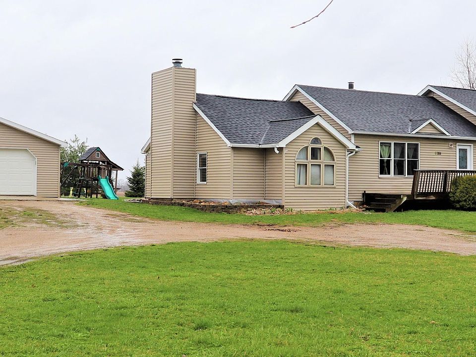 Welcome home to this country ranch situated on a just under an acre and loaded with possibilities. Approx. 1700 sq. ft is an open floor plan and features a sprawling kitchen, formal dining room, 3 bedrooms and a tiled bath. Bedrooms have 9 foot ceilings and smaller third bedroom is an office or den style room. Home has a large front living room as well as bonus main floor family room with fireplace and beamed / vaulted ceiling perfect for entertaining or large family gatherings. Home affordsa lot of space and ample room to roam. Olivet schools , large rear wood deck, newer roof, a 24x24 pole barn and storage shed round out just a few of amenities