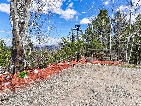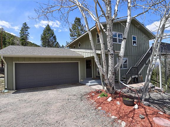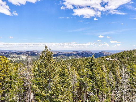 An acre of pines and aspen with a “million” acres of view. This “living” scene will constantly be transforming before your eyes. The sunrise on the eastern horizon begins the show, lighting the distant, snow-capped peaks of the continental divide in Rocky Mountain National Park and the entire Denver metroplex below. The light, the shadows and the weather constantly change the panorama until darkness falls and the scene becomes a kaleidoscope of twinkling lights, moon shadows and starlight. Doubleheader Ranch Estates is a true mountain environment with one of the most convenient foothill locations you will find to the benefits Denver has to offer. The 2-story home offers bedrooms and a bath on each level with an oversized 2 car garage and an exterior access, standup, crawl space that has more storage than you may ever need. The top floor is a self-contained primary bedroom living level together with the kitchen, living room, full bath, laundry, and deck access. The ground level contains 2 bedrooms, a cozy family area, ¾ bath and bonus room for your imagination. The views and location are the stars of this well-kept home.