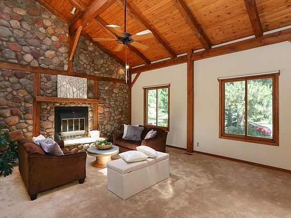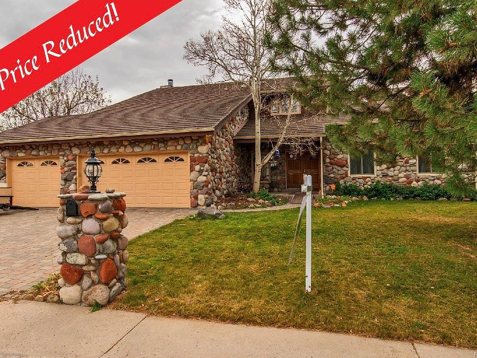 Amazingly constructed of river rock, over 6000 sq ft custom home, as solid as they come. Two stories with a walk-out basement, Five bedrooms, Four and 1/2 baths, Three-car garage, One-third acre landscaped. Lovingly owned and maintained for 32 years by one couple. The entire framework of the house is made of 8-12 in Missouri oak beams, by an unusual "post and beam" method with subsequent layering too detailed to describe here. Newer Anderson windows and matuire trees buffer sound to the south. The home has both active and passive solar with an 8KW system on the roof, as well as gas forced air. There is a new 98% efficient heating and cooling system, a new roof made of bonded steel shingles built to withstand a class 5 hailstorm, a new irrigation syrtem for lawn and garden watering, and new carpeting through much of the home. Staircases are four foot wide and ceilings soar. Imagine you are lounging in a mountain lodge and live the good life!